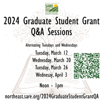 The Northeast Sustainable Agriculture Research and Education Graduate Student Research Grant Program is currently calling for proposals. As part of the call for proposals, Northeast SARE Graduate Student Research Grant Administrator Kaitlyn Sirna hosted a series of question-and-answer sessions throughout March and into April.