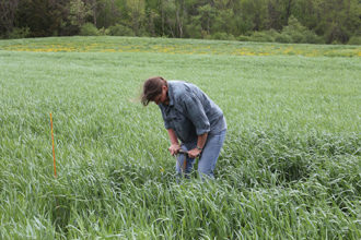 Cornell University agronomist Quirine Ketterings conducted her Northeast SARE Research and Education project to better understand the incorporation of winter cereal cover crops— triticale, winter rye and wheat—into silage corn rotations. This double crop system enables farmers to provide both corn and cover crops as livestock feed. Because growing cover crops as dairy forages means they need to be managed like cash crops, Quirine and her team were particularly interested in learning the nitrogen (N) needs of these covers during green-up. Nitrogen management is important to not only gain good yields but is also a key factor in achieving optimal dietary protein as a dairy feed.