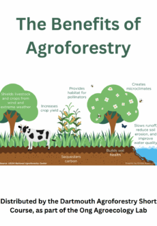 This video introduces the Agroforestry Transition Hub at Dartmouth College, which focuses on education and on-farm research to promote transitions to agroforestry on farms in the Northeast. The project also created two zines, Common Agroforestry Practices and The Benefits of Agroforestry.