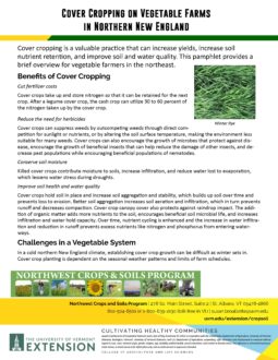 This bulletin, authored by Heather Darby and her staff at the University of Vermont Extension Crops and Soils Team, provides basic information on cover crop strategies for vegetable farms based in northern New England. It addresses cover crop benefits and challenges; cover crop selection, seeding option planting dates, termination options; and additional resources. The bulletin also includes case studies of three northern Vermont vegetable farms that have been using cover crops for more than 20 years.