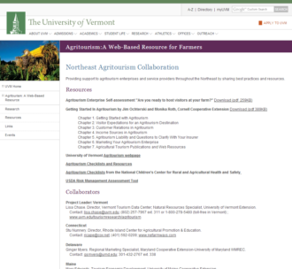 This Northeast Agritourism Collaboration website, hosted by the University of Vermont, supports farmers and ranchers interested in entering the agritourism business by sharing best practices and resources available in the Northeast.